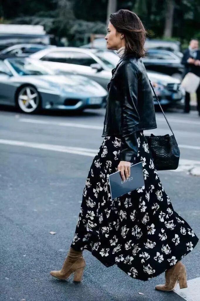 秋天穿黑皮衣好看的搭配灵感全在这里了。