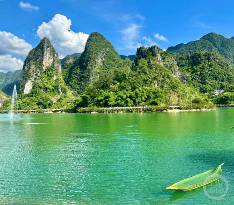 驱车前往凌云县的浩坤湖。湖水因富含矿物质而呈现独特的蓝绿色,群山倒映在湖面上,仿佛走进了一幅巨大的水墨画。